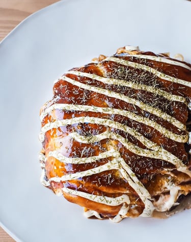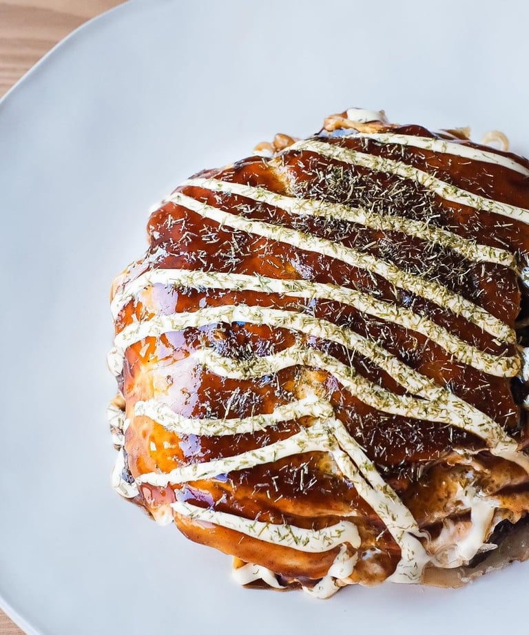 Version de l'Okonomiyaki cuisinée à Hiroshima. La différence réside dans la cuisson séparée des ingrédients.